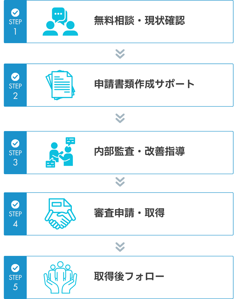 審査機関の選定・審査対応を一括サポート